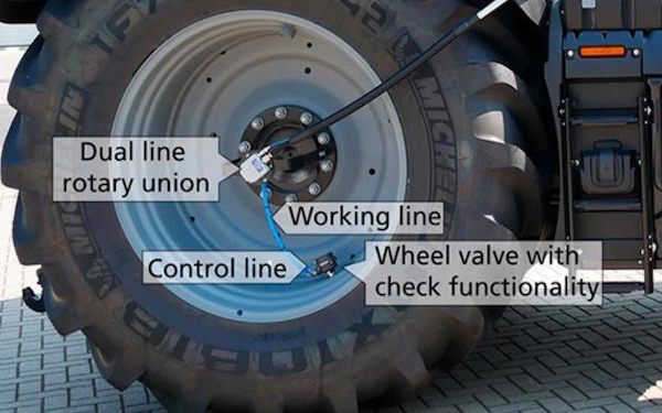 The rotary unions and the entire air system on the front and rear axles are pressurised only during an active control cycle or pressure monitoring check with the tyres protected by wheel valves on the tyre rims at all times ✔